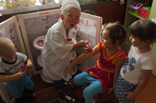 Балалар белән рус теле эшчәнлегендә кунакка рус кызы Маша һәм татар егете Марат кунакка килде. Без алар белән уеннар уйнадык.