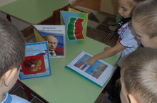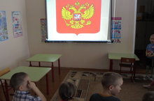 Бу атна дәвамында балалар белән Россия безнең илебез, аның зур дәүләт икәнлеген, башкаласы - Мәскәү шәһәре, флагы, гимны, гербы белән танышу өстендә эшлибез. Танып белү эшчәнлегендә Россия символикалары белән презентация ярдәмендә якыннан таныштык.