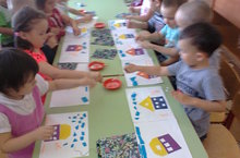 Балалар белән рәсем эшчәнлегендә татар орнаментлары кулланып ашъяулык бизәдек. Эшчәнлекнең максаты балаларда туган тел, туган йортны ярату, аның белән горурлану хисләре тәрбияләү;– балаларны татар милли киемнәре һәм орнаментлары белән таныштыруны дәвам итү;татар орнаменты мотивларын (яфрак, ләлә, мәк, кыңгырау, тукранбаш, кәнәфер) искә төшерү һәм кабатлау; ашъяулык силуэтында орнамент мотивларыннан бизәк төзергә өйрәтү; мөстәкыйль рәвештә бизәк ясау сәләтен үстерү; пумала белән пөхтә эш итүне үзләштерү.