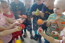 Рус теле эшчәнлегендә уен аша балалар белән яшелчәләрнең атамаларын рус телендә өйрәнү, яшелчә бакчасын һәм җиләк-җиимеш бакчасын аерырга өйрәнү өстендә эшлибез.