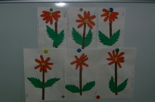 Балалар белән кисеп ябыштыру шөгылендә дә Муса Җәлилнең шигырьләре белән танышуны дәвам иттек һәм "Кызыл ромашка" шигеренә чәчкәләр ябыштырдык.