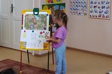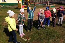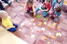 Кечкенәләр белән агач яфракларын җыю ярдәмендә төсләрне ныгыту өстендә эшлибез.