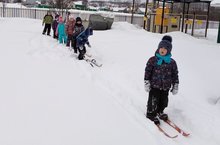 Балалар белән чаңгыда йөрергә өйрәнүебезне дәвам итәбез.