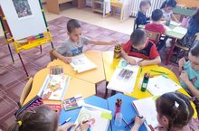 Бу атна эчендә балаларның хокуклары турында әңгәмәләр үткәрдек, уеннар уйнадык һәм рәсем эшчәнлегендә "Кызыл Калфакны" рәсемгә төшердек.