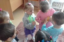 Бакчабыздан мәктәпкә әзерлек төркемен озатуга бакчабыз бушап калган сымак тоелды. Әмма безнең ккиләчәгебез кечкенәләр калды. Менә бүген без алар белән музыка эшчәнлегендә "Куш кулым" җырын кабатладык һәм музыкаль ритмик хәрәкәтләр вакытында уенчыклар белән бию өйрәндек.