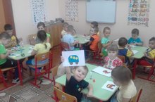 Бүгенге кисеп ябыштыру эшчәнлегендә балалар үзләренә охшаган транспорт төрләрен кисеп ябыштырдылар.