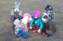 Кечкенәләр белән "Кем күбрәк күркәләр җыя? " дигән уен уйнадык.
