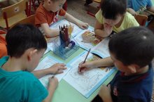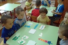 Татар милли сәнгатенә мәхәббәт, ихтирам тәрбияләү, милли киемнәрнең исемнәрен дөрес әйтү күнекмәләрен бирү уңаеннан кисеп ябыштыру эшчәнлегендә балалар белән татар халык орнаментларын искә төшердек һәм түбәтәй белән альяпкычны төрле бизәкләр белән бизәдек.