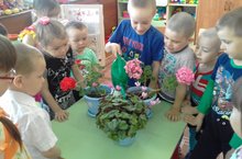 Бүген балалар белән тәрәз төбендә үсүче гөлләр белән таныштык. Балалар яран белән цикламен гөлен аерырга өйрәнделәр. Гөлләрне тәрбияләп, су сибеп, корган яфракларыннан чистартып торсаң гына аларны матур килеш курергә булуын белделәр.
