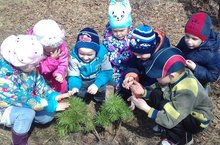Табигатебезне тагында ямьләндерү, яшәртү уңаеннан бакчабыз тирәли мәктәпкә әзерлек төркеме балалары белән агачлар утырттык.