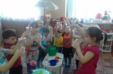 "Суның үзенчәлекләре" (гади тәҗрибәләр) 21.03.2017Бүген балалар белән гади тәҗрибәләр, уеннар аша су үзенчәлекләре турында белемнәрен тирәнәйтү өстендә эшләделәр. Яшәү чыганагы булган суга сак караш һәм балаларның күзаллауларын мөстәкыйль фикер йөртә белү сәләтләрен үстерү тәрбияләнде.