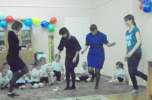 Физкультура эшчәнлегендә балалар белән төрле хәрәкәтле уеннар уйныйбыз, ике аякта, бер аякта сикерү элементлары кертелгән күнегүләр эшлибез. Уеннар аша балаларда җитезлек, өлгерлек, кыюлык сыйфатлары тәрбияләнә.