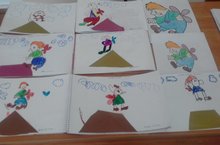 Бу атна эчендә "Заманча әкиятләр" темасы буенча эшлибез һәм балалар белән рәсем эшчәнлегендә түбәдә яшәүче Карлсонны ясадык, кисеп ябыштыру элементлары кертеп түбә ясарга өйрәндек.