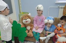 Абдулла Алишның "Сертотмас үрдәк" әкияте буген бәйләнгән курчаклар ярдәмендә куелды. Балалар фантазияне эшкә җигеп, рольләрне оста итеп, бер - берсенә ярдәмләшеп башкарып чыктылар. Курчаклар эстетик яктан матур, кулга йомшак, төсләре ачык. Гомумән әйткәндә гел уйныйсы килеп тора.