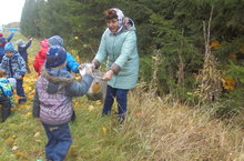 Кечкенәләр төркеме балалары көзге табигатьне күзәтәләр. Чәчәк орлыклары җыялар. 03.10.2017