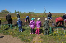 Бакчабызда кызу эш. Без коллектив белән бакчабызга күп яшелчәләр утырттык. 20.05.2016