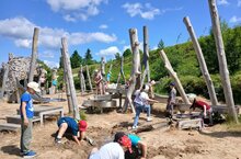 Бүген лагерьда көнебез гадәттәгечә башланып китте. Иртәнге линейка, физзарядка һәм иртәнге аш. Аннан соң табигатькә сәяхәт ясап алдык. Төшке аштан соң кино карап, төрле спорт уеннары уйнадык.