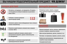 Находясь в общественном месте (улице, парке, вокзале), совершая поездки в общественном транспорте, обращай внимание на оставленные сумки, портфели, пакеты, свертки или другие бесхозные предметы. В них могут находиться взрывные устройства.