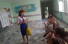 Первая половина дня была отведена организационной работе: увлекательная зарядка, полезный завтрак, профилактическая беседа о мерах противопожарной безопасности и конкурс рисунков.