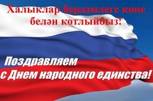 4 нче ноябрь – Россия дәүләтендә гомер кичерүче 190 нан артык милләт вәкилләренең уртак бәйрәме — Халыклар бердәмлеге көне. Ватаныбыз иминлеге өчен төрле диндәге, төрле милләт халыкларын берләштергән олы вакыйганың кайтавазы булып тора. Без Россиянең кайсы гына өлкәсендә, республикасында, шәһәр-авылларында яшәсәк тә, безне уртак максатлар берләштерә. Ватаныбызның хәзергесе һәм киләчәге өчен һәркем җаваплы. Бүгенге зур бәйрәм белән чын күңелдән котлыйбыз, илебез тыныч, күгебез һәрвакытта да аяз булсын. Бәйрәм белән!