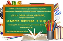 Уважаемые родители будущих первоклассников! МБОУ "СОШ-интернат для одаренных детей" Сабинского муниципального района РТ приглашает вас и ваших детей на День открытых дверей, который состоится 16 марта 2019 года в 13.00 по адресу: пгт Богатые Сабы, ул.К.Гали, д.40.