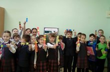 К началу урока в библиотеку занесли посылку и письмо. В письме одна книжка просила о помощи у ребят, так как она была растрепанной и вся в пятнах. В посылке как раз была эта книга. Когда дети увидели ее, то сразу же сказали, что эту книгу не берегли, трогали грязными руками и возможно принимали пищу возле нее. Мы с ребятами проговорили правила обращения с книгой. Дети очень активно участвовали на уроке. Вместо пяти мы записали девять правил обращения с книгой. Во второй части урока ученики своими руками сделали веселые закладки для книг. Урок прошел очень интересно и продуктивно, а из получившихся закладок мы сделали небольшую выставку.
