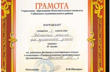 18 марта на базе Центра детского творчества состоялся районный конкурс "Фестиваль иностранных языков" среди дошкольных и общеобразовательных организаций района. Фестиваль проводился в целях формирования и развития творческих и познавательных способностей учащихся, выявления талантливых, одаренных школьников в области иностранных языков. Учащиеся Школы для одаренных детей также не остались в стороне: они выступили на арабском, английском и китайском языках. Учащиеся 1 класса со сказкой "Теремок" на китайском языке заняли 2 место в номинации "Театрализованное представление", учащиеся 5 класса со сценкой "Белоснежка" заняли 3 место. Объявляем благодарность воспитателю 5 класса Гайнуллиной Р.Р. и учителю китайского языка Королевой А.С. за подготовку призеров фестиваля. Молодцы!