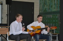 Под звуки музыки ведущие начали свое выступление. Ребятам 5 класса уже с утра удалось поднять праздничное настроение. Не забыли ведущие и про тех, кто в этом году только присоединились в коллектив школы. Для них приготовили веселый конкурс «Шуточные вопросы “. А с остальными учителями провели конкурс в форме экзамена. Ученики пели песни про учителей, танцевали. Но пришло время прощаться и концерт подошел к концу. Красиво и душевно завершила ученица 2 класса Галимзянова Лиана, исполнив песню «Әйлән-бәйлән».Всем было весело и тепло, впереди еще не один концерт в этой школе!