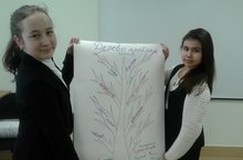 Занятие началось с ритуала приветствия ,которое перешло в упражение . Дети здоровались определенным способом :один хлопок –здороваются за руки,второй хлопок-пятками….и т д..Затем ребята поделились с каким настроением они пришли в школу,делая сравнение с временами года.Ребята сравнили свое настроение как летнее жаркое лето,с морскими волнами… и т д..Затем перешли на упражнение,где ребятам предлагалось написать 10 определений ,отвечающих на вопрос : «Кто я ?»и являющийся их характеристикой.После проделанного упражнения началось обсуждение ,каких слов в характеристике больше :положительных или отрицательных .Какое слово написали первым?Почему?Легко ли было выполнять упражнение? И т д.Результаты: на 45 минутном тренинге учащиеся в микрогруппах успешно выполняли все упражения.Учились взаимодействовать ,оценивать себя и своих товарищей.Через упражнения и игры снимали напряжение ,что способствовало к более сплоченному общению.