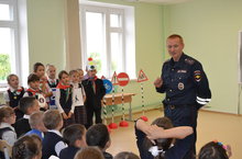 После высупления сотрудник ГИБДД , Насибуллин Ильнур, напомнил детям о правилах перехода проезжей части и о безопасном поведении во внутридворовых проездах, о том, что необходимо всегда пристегиваться в салоне автомашины. Они призвал соблюдать правила дорожного движения и подарил детям световозвращающие браслеты и «Тетради юного пешехода». -