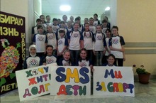 Также участниками акции были подарены сердечки с целью поддержки этой акции, и из этих маленьких сердечек было создано одно большое сердце. SMS – дети сделали подарок. Они выступали на сцене. Был организован очень красивый флешмоб.