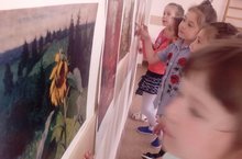 Бүген бакчабызда танылган рус, совет рәссамнарының иллюстрацияләреннән күргәзмә оештырылды. Уртанчылар, зурлар, мәктәпкә әзерлек төркеме балалары рәссамнарның табигать күенешләрен, хезмәт ияләрен тасвирлап ясаган картиналары белән таныштылар.Тирә-юньдәге матурлыкны элек фоторәсем аша түгел, ә буяу, пумала белән генә тасвирлап булганлыгы, рәссамнарның нечкә күңелле осталар булуы, уңган, тырыш, түзем булулары аңлатылды.