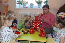 Без беренче кечкенәләр төркеме балалары белән сюжетлы -рольле уеннар уйнарга яратабыз. Бу атна "Гаилә" темасына багышланган уңайдан, балалар белән төркемдә гаиләдә кичке чәй эчү күренешен уйнадык.Һәрбер бала үз ролен оста итеп башкарды, кунак булып килгән апаларын чәй белән сыйладылар.