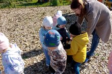 Детей не пугает непогода. Они рады и солнышку и дождю. Им интересно наблюдать за всем происходящим вокруг. Во время очередной прогулки дети первой младшей группы наблюдали за состоянием погоды. В ходе наблюдения с детьми определяли, есть ли на небе солнышко или тучи. Если нет то, что сделали тучи (закрыли солнце), какое небо хмурое. Дует ветер и раскачивает деревья. Поэтому листья опадают. Детям было дано трудовое поручение – сбор опавшей листвы.
