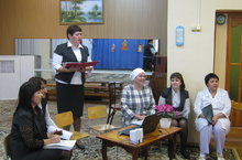 Бу йортта һәркем өчен дә иртә бертөсле башланып китәдер.Бәлки,кайберләре таң атканда ук торып утырган,монда эшләүчеләр килгәнче үк юынып,урын-җирен җыештырып эшен бетереп куйгандыр.Ә кемдер тәрәзәдән күзен алмый йөрәк түрендә генә йөрткән бер якын кешесен көтә,пыскып кына янган өмет ялкынын көн саен ниндидер аклау-аклану ярдәмендә сүндерми торадыр.Шушындый уйларга чумып, без беренче октябрь-өлкәннәр көне уңаеннан мәктәпкә хәзерлек төркеме балалары белән районыбызның Лесхоз бистәсендә урнашкан картлар һәм инвалидлар йортына "Шәфкатълелек акциясе"дип исемләнгән концерт программасы белән бардык.Монда яшәүчеләрнең күңелләрен күтәреп,балалар матур җырлар җырладылар,төрле биюләр биеделәр.Бакчабыз мөдире Мөхәрләмова Әлфия Шамилевна өлкәннәрне бәйрәм белән котлап изге теләкләрен җиткерде.Музыка җитәкчеләребез Валиева Лилия Илдаровна үзенең матур җырларын бүләк итсә,Халиуллина Гүзәл Нуруловна очынып-очынып биюе белән әби-бабайларыбызның ихтирамын яулады.Әлеге чараны оештыруда тәрбиячеләр Шарипова Фәридә Миннисламовна,Абубакирова Райлә Ахатовна, Ибатуллина Илзирә Сөләймановналар зур тырышлык куйдылар.Өлкәннәребез концертны бик яратып ,яшь аралаш карап,тагын килүебезне сорап озатып калдылар.Соңыннан без бергәләшеп фотога төштек.
