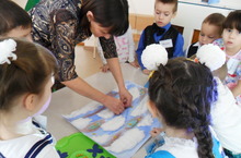 “Әбиемнең серле сандыгы” темасын йомгаклап, бүген зурлар һәм мәктәпкә әзерлек төркемнәре балаларының әти-әниләр белән берлектә ясалган “Кием кешене бизи” дигән рәсем күргәзмәсе оештырылды.