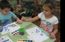 2 нче кечкенәләр төркемендә иҗади сәнгать (кисеп ябыштыру) шөгылендә балалар төсле кәгазь, пумала, салфетка белән эш итә беләләр.