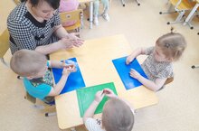 Бүген зурлар төркеме балалары гжель сәнгате буенча белемнәрен арттырып, кисеп ябыштыру шөгылендә "Әкияти кош" кистеләр. Балаларга шөгыль бик ошады.