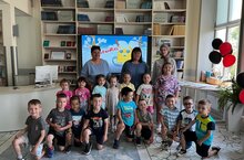 Россия көне уңаеннан уртанчылар төркеме балалары (тәрбиячеләре Хазиева А.Х), китапханәгә экскурсиягә бардылар. Балаларны шат күңел белән китапханә хезмәткәрләре каршы алдылар. Экскурсия барышында балаларны уку залы һәм балалар абонементы эшчәнлеге белән таныштырдылар. Россия флагын балаларга ябыштырырга тәкъдим иттеләр, балалар бик теләп бу эшкә тотындылар. Шулай ук татар халык әкиятләренә нигезләнгән мультфильмнар да балалар күңеленә хуш килде.
