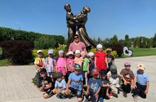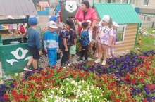 Территория детского сада оформлена красивыми цветочными клумбами. В клумбах растут раные сорта цветов: петунии, бархатцы, георгины, линии, хризантемы, хосты, ирисы, цинии. Воспитатели знакомят детей со цветами. Рассказывают детям о способах выращивания за цветами.