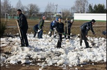 В апреле субботник приурочивался ко дню рождения Ленина. Началась история советских субботников в 1919-м и базировалась на голом энтузиазме. Символом советского субботника этого времени можно считать фотографию Владимира Ильича Ленина с бревном. А сегодня, 22 апреля коллектив гимназии и учащиеся вышли с лопатами на «красную маёвку», посвященную ко Дню земли и дню рождения В.И.Ленина. Все с энтузиазмом раскидывали остатки снега.