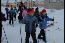 Первый урок физкультуры на лыжах учащихся 1Б класса