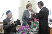 "Награда нашла своих героев"-так начал свое выступление руководитель Исполкома Сабинского иуниципального района Р.М.Гасимов.Он вручил нашим ветеранам ВОВ и тыла Таскире апа Бибарцевой и Ахмат абый Нугманову памятные медали от мэра Москвы С.Собянина.
