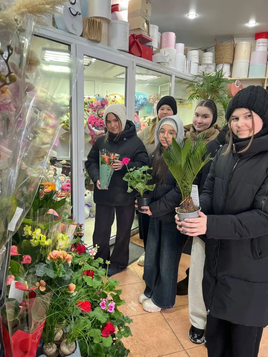 В рамках профориентационной работы учащиеся 7б агрокласса посетили магазин «Империя цветов» и познакомились с профессией людей, занятых в цветоводстве. Цель: увидеть своеобразие и тайну жизни цветов, понимать красоту родной природы и бережно относиться ко всему живому. Девочки с интересом рассматривали витрины цветочного магазина, выделяли комнатные цветы и цветы для букетов. В магазине оказался большой ассортимент цветов, подкормка для них, горшочки разных размеров и различных форм. Экскурсия была очень интересной и познавательной.