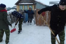 Неделя добра 14.03.2018 В рамках Акции "Неделя добра" взвод 10 класса посетил своего подшевного пенсионера и очистил двор от снега.