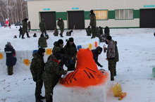 Снежные фигуры 17.12.2017 В школе вся детвора и взрослые готовятся к конкурсу снежных фигур. После уроков все кадеты как один высыпают на площадку, каждому хочется вылепить свою фигуру лучше, выше и красивее остальных. Дело остается за малым- покрасить шедевры. Конкурс посвящен уходящему году экологии и предстоящему - добровольцев.