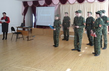 Поздравляем нашу команду, занявшую1 место на районном этапе Республиканской военно-патриотической игры "Зарница-2014". Галимуллин Тимур - 1 место по подтягиванию на перекладине! Фархиева Залина - 2 место по сгибанию и разгибанию рук! Билалова Камиля - 2 место по стрельбе из ПВ! Галимуллин Тимур -3 место по разборке и сборке АК!