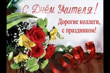 Мы поздравляем вас, коллеги, педагоги!Наш день сегодня - день учителей!Желаем, чтоб встречались на дорогеВам счастье, радость,множество друзей!Желаем Вам способных подопечныхТалантов в классе, знающих детей.Желаем чтобы было бесконечнымТерпение у Вас,учителей! -