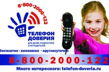 Телефон доверия 01.12.1999 Телефон доверия 8-800-2000-122 • Помощь на Телефоне доверия всегда анонимна. Позвонивший не должен сообщать свою фамилию, адрес и другие данные. Достаточно просто назвать свое или вымышленное имя для удобства общения. • Детский телефон доверия работает круглосуточно. • Звонок с мобильного или стационарного телефона - бесплатный