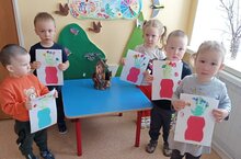 С детьми младшей группы была проведена интегрированное занятие по художественно-эстетическому развитию: рисование и аппликация. Дети вместе с воспитателем сделали цветы в вазе. Готовые вазочки дети сами приклеили на белую бумагу, а чтобы нарисовать цветы использовали пальчиковую технику